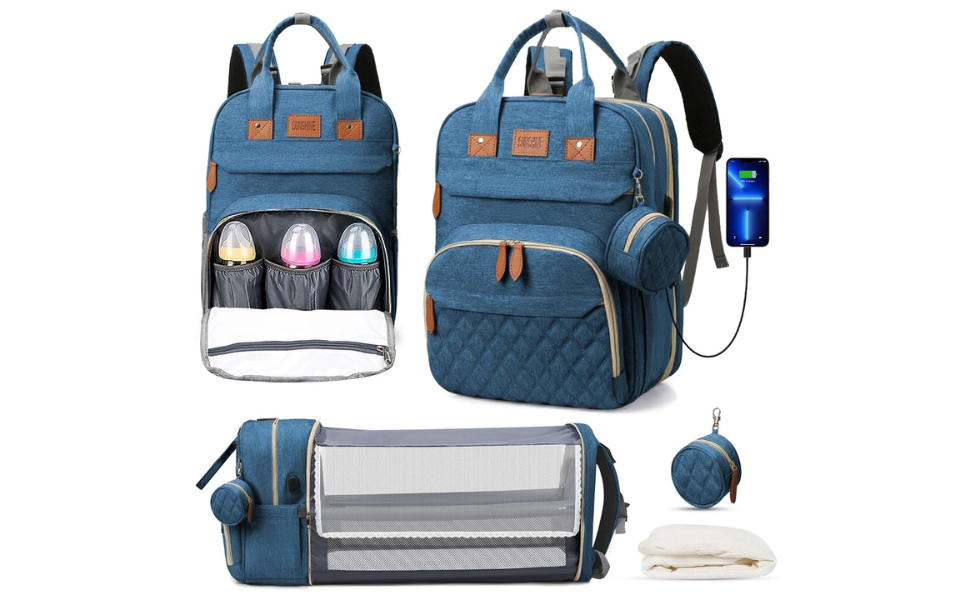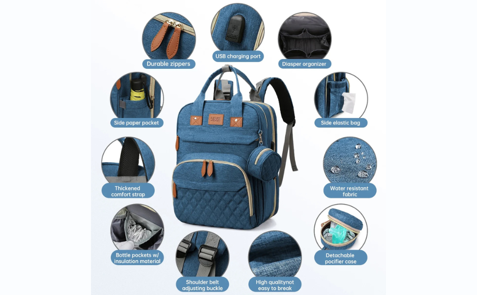 Unisex Multifunctional Baby Diaper Bag, Backpack with USB Port